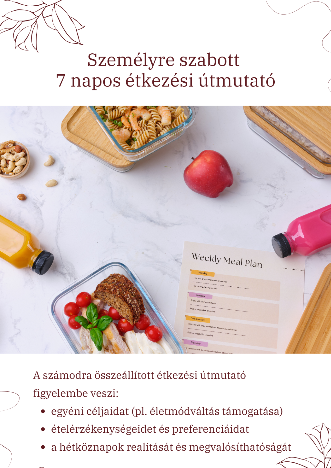 - az egyéni céljaidat (pl. életmódváltás, testsúlycsökkentés támogatása, energiaszint növelése),